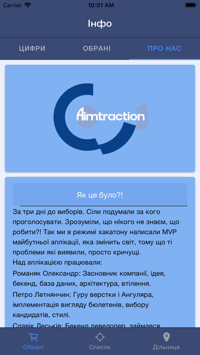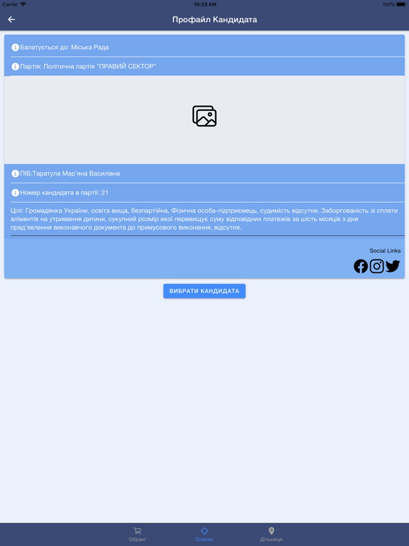Аплікація дозволяє ознайомитись з програмою кандидата, якщо він надав згоду для розміщення таких даних.