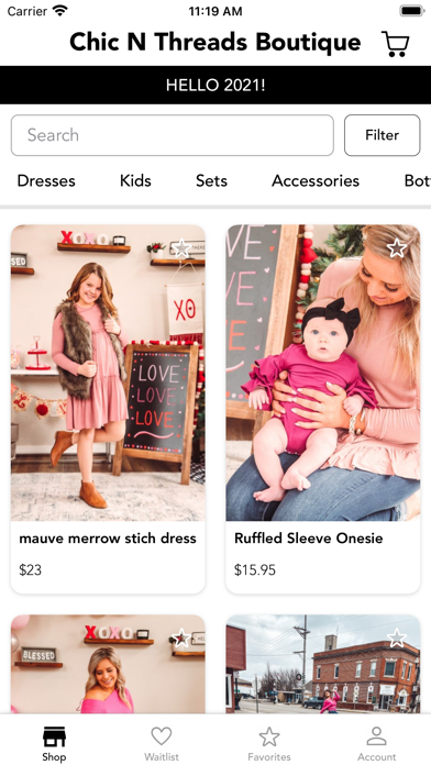 Welcome to the Chic N Threads Boutique App! The best way to shop with Chic N Threads Boutique on iOS! About Us: Features: - Browse all of our most recent arrivals and promotions - Easy ordering and checkout - Waitlist items and purchase them when they are back in stock - Email notification for order fulfillment and shipping