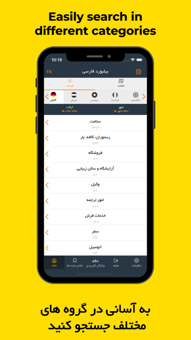 اپلیکیشن بیلبورد فارسی نخستین و کامل ترین بانک داده های دیجیتال کسب و کارها و متخصصین فارسی زبان در اروپا می باشد.