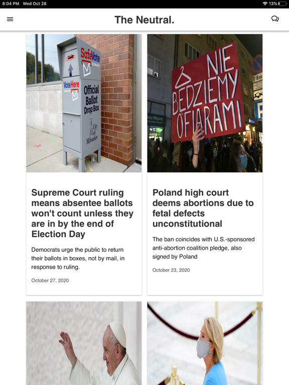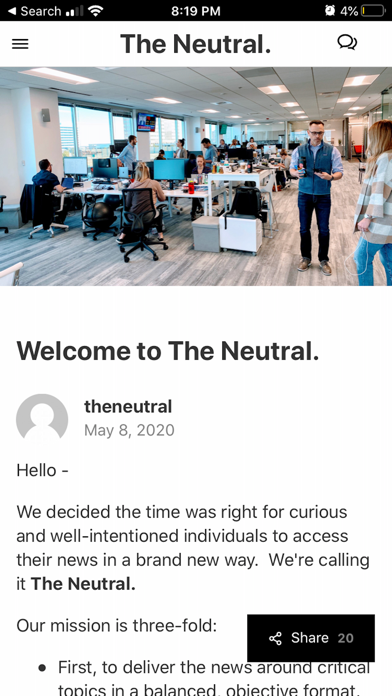 The Neutral believes that there is a growing group of individuals who want to understand what’s going on in the world in a balanced, objective way, but don’t have the time or energy to sift through hundreds of news sources.