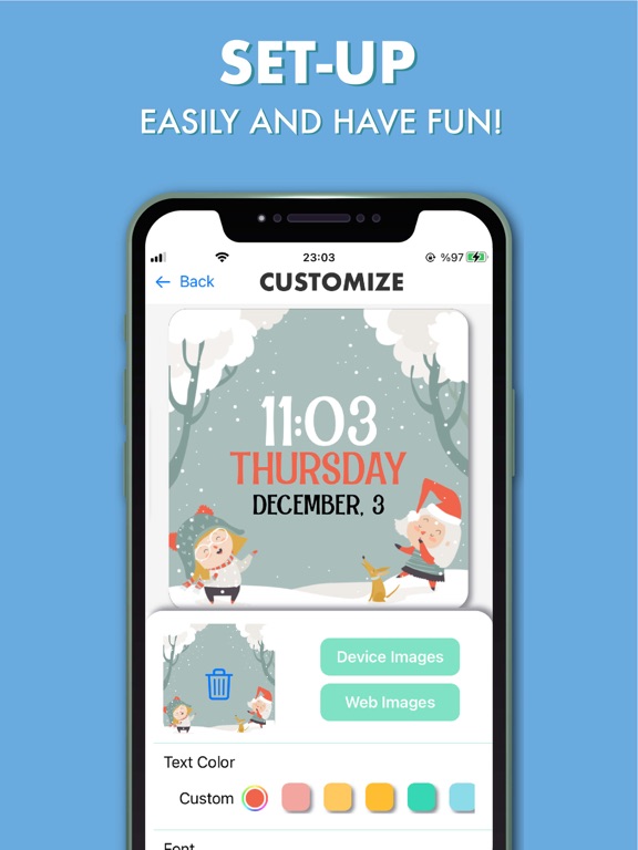 You can choose from a wide collection of highly customizable widgets and adjust them to fit your desired appearance. Download from an unlimited variety of backgrounds or use one of our special designs. Customize color, font, design, and find the perfect match for yourself. You can also use your photos.