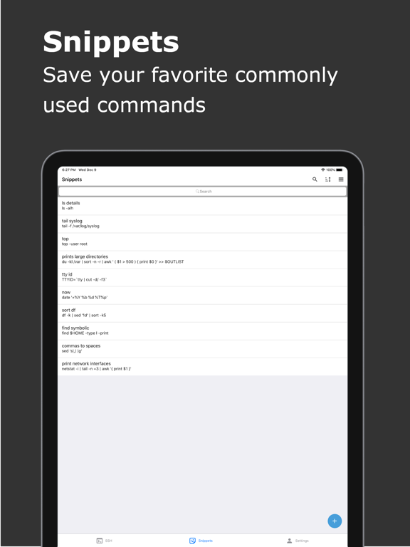 * Snippets. Save your favorite commonly used commands and easily run them.