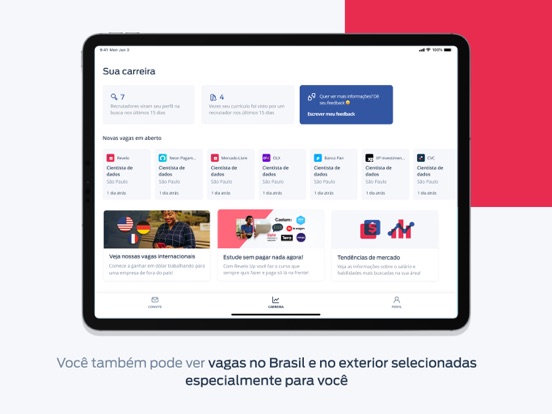 São milhares de empresas! Você poderá encontrar oportunidades para trabalhar em startups e multinacionais. E depois de conseguir seu novo emprego, você ganhará um bônus de R$100!