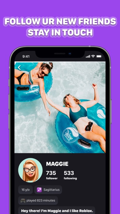 You can follow your new friends and stay in touch. When they're playing again, you can join their room with one tap.