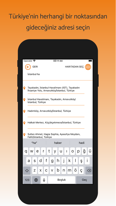 • Harita üzerinden kalkış ve varış noktalarınızı seçerek yolculuk güzergahınızı belirleyin.
