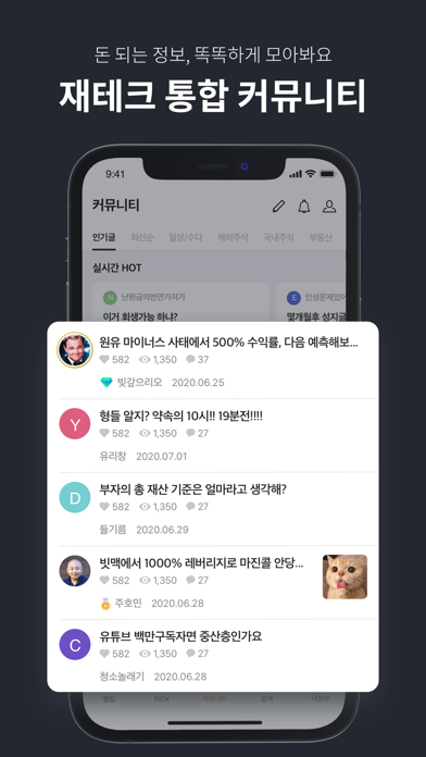 커뮤니티의 주식 인플루언서를 팔로우하고 매일 업로드되는 고급 주식 정보를
