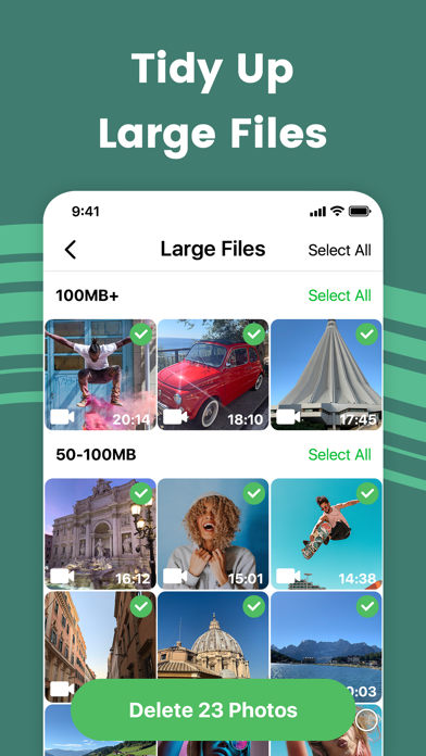 - Automatically computes useless files and photos, allowing you to delete them with just a few taps.