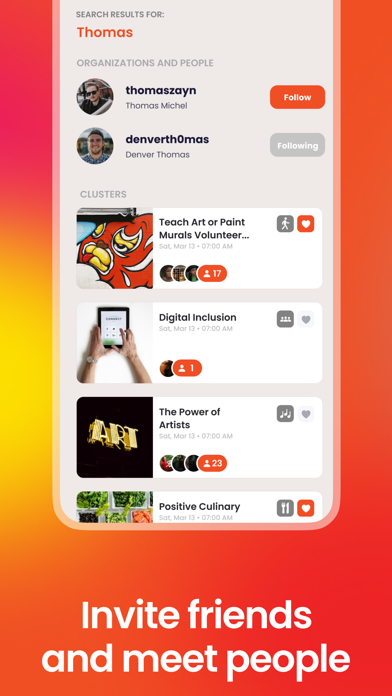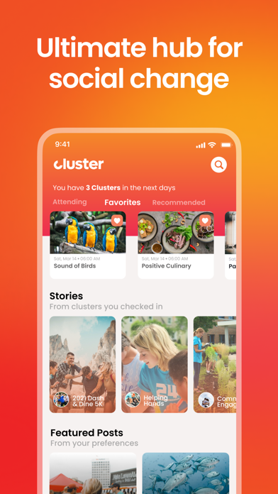 Easily find local activities around you, see the events your friends are attending and join the cause by volunteering your energy, passion and time. When you find a CLUSTER supporting a cause near and dear to your heart, click ‘Attend’ and become part of the change. It’s that simple!