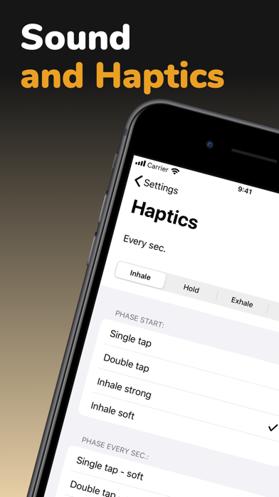 - set haptic response for every second of your breathing session (not supported on devices prior to iPhone 6s)