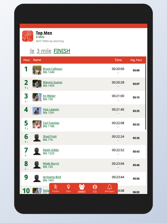 - Participant times, paces, estimates, and places in real-time
