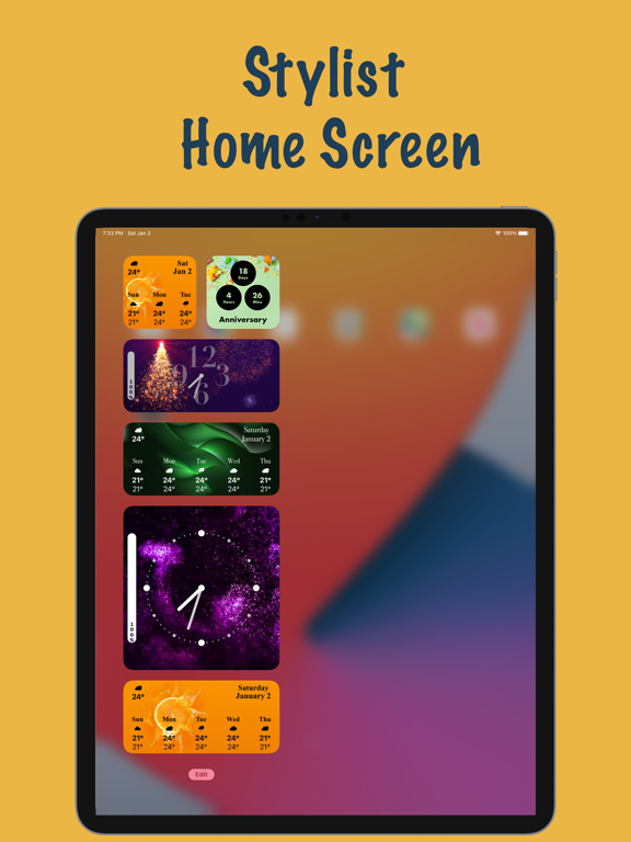 Color Widgets Instant contains a large set of good pre-made designs for weather, forecast, count-down, time, date, battery, calendar, photo collection, quotes and more. You can immediately use the design in second or better yet, make your own. This app provides powerful customization tools to make widgets on your Home Screen unique:
