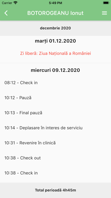 Folosind această aplicație veți avea o evidență clară a orelor petrecute de fiecare membru al echipei dumneavoastră în clinică și fiecare își poate consulta în timp real situația orelor lucrate.