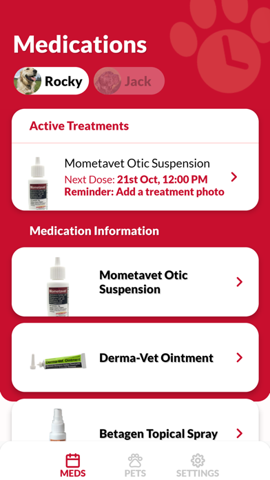 Pet Med Reminder pairs exclusively with Phoenix Mometavet Otic Suspension, Derma-vet Ointment, Betagen Topical Spray and Tri-Otic Ointment, and is designed to assist pet owners with medication application and compliance, as well as help clinics with curbside service. Pet Med Reminder allows users to: