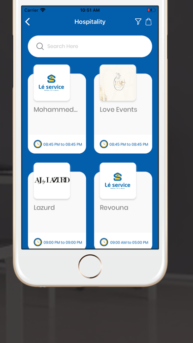 يحتوي هذا القسم على العديد من الشركات المتخصصة في الورد والشوكولاتة، على أن يختار المستخدم إحدى الشركات المتواجدة بهذا التطبيق وتكون هذه الشركات متخصصة لهذه الخدمة. هي سلسلة قائمة لكل قسم يكمل ا آ لخر لنجعل تطبيق Lé service يحتوي على عائلة واحدة.