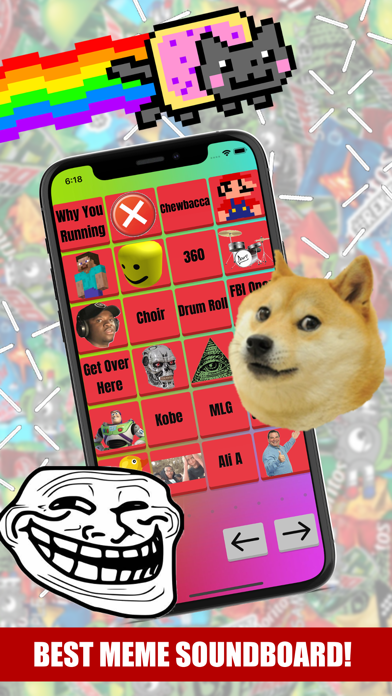 OVER 200 MEMES WITH MORE BEING ADDED EVERY WEEK! DOWNLOAD NOW TO LEVEL UP YOUR MEME GAME.