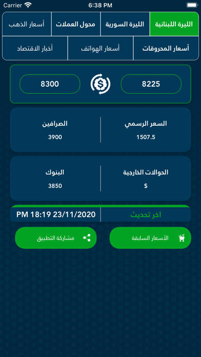 A team of programmers and designers, due to the difficulty for citizens in knowing the exchange rate, we created this application that helps to solve this problem by transferring the market price directly, thus we are the first application in Lebanon that allows users to see the official dollar rates and at the exchanges, euro, gold, and fuel, at every change in price during the day and allows you to monitor every momentary price change.