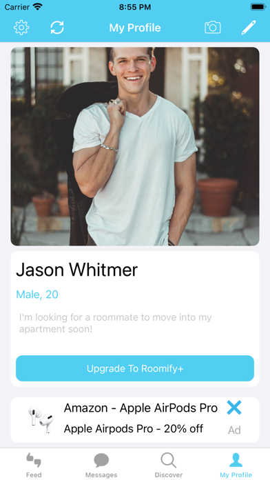 Roomify is the easiest way to find a roommate close to you and it is completely free! We give you a feed of people at your school to scroll through so you can easily pick your roommate. Download Roomie for iPhone to find the perfect roommate & best friend!