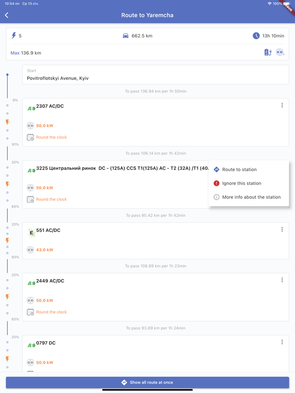 Плануйте подорожі електрокаром з EV Route. Швидко прокладайте оптимальний маршрут через зарядні станції по всій країні. EV route розрахує час зарядки на кожній станції, прорахує електровитрати між зупинками, обере лише станції з потрібним конектором. Тепер не потрібно самостійно шукати станції зарядки, вручну рахувати чи вистачить заряду та час подорожі. EV Route - новий рівень свободи та можливостей для електромобілів.