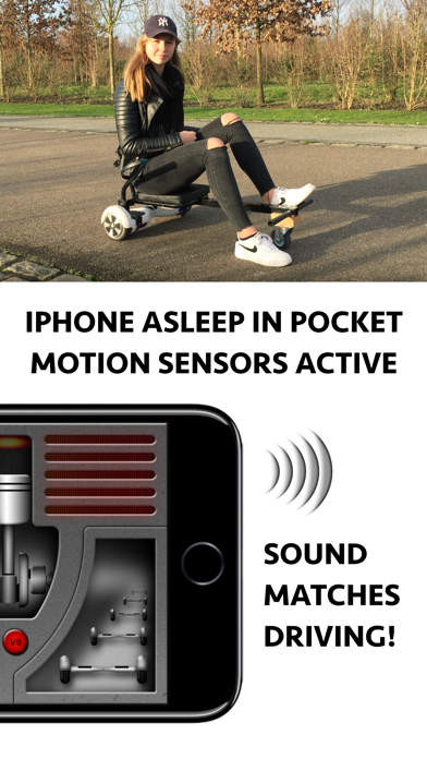 Add an incredible race engine sound to your hoverboard, hoverkart or self-balancing scooter! Throttle, tire skidding, and gear shifting all matched automatically to your driving using iPhone’s motion sensors. Compatible with all boards, no additional hardware is needed.