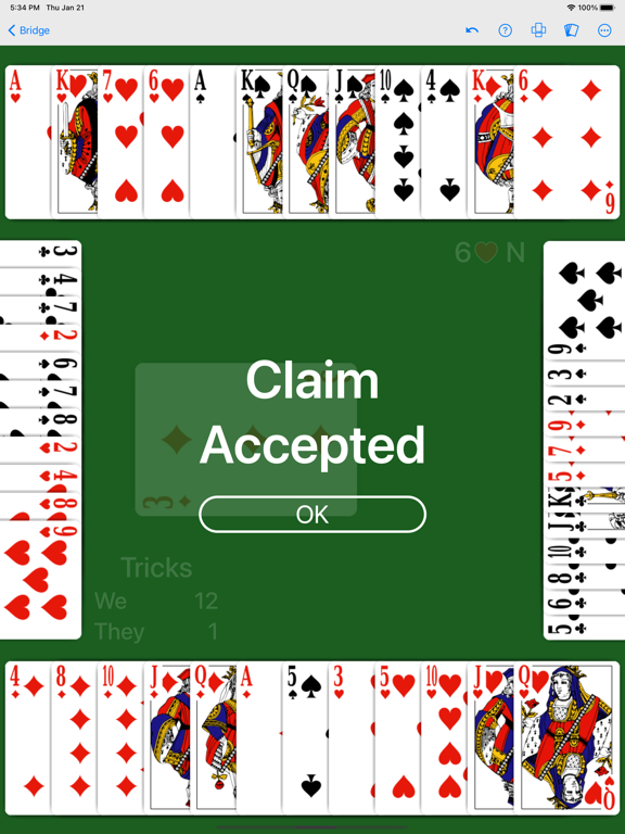 • Claim the remaining tricks and NeuralPlay's double dummy solver will verify your claim.