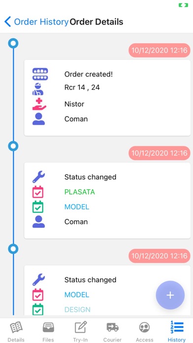 In deplina sincronizare cu softul online de comenzi protetice, Aplicatia furnizeaza informatii in timp real a fluxului lucrarilor dentare din laborator!