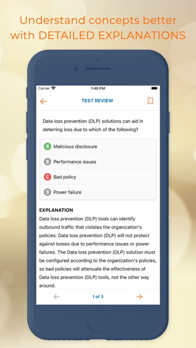PRACTICE TESTS: Multiple practice and mock tests to assess your exam readiness. Tests are randomly generated from 500+ realistic questions, every time you take the test. Each question includes detailed in-depth explanation to help you understand the concept better.