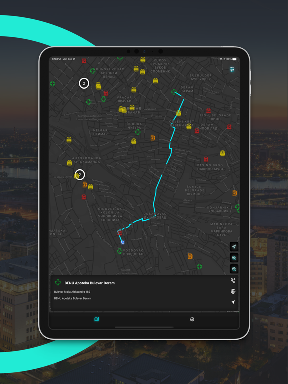 Na mapi aplikacije možete videti pronaći sve dostupne objekte ili isfiltrirati određenu kategoriju obejkata, kao i informacije i najbržu putanju do izabranog objekta.