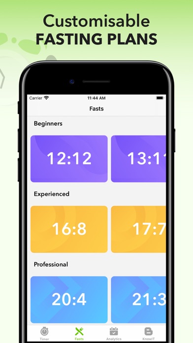 You can begin with the beginner fasts, slowly and gradually you can adapt to the experienced and the professional ones. You get a start timer and a goal timer that monitors your progress.