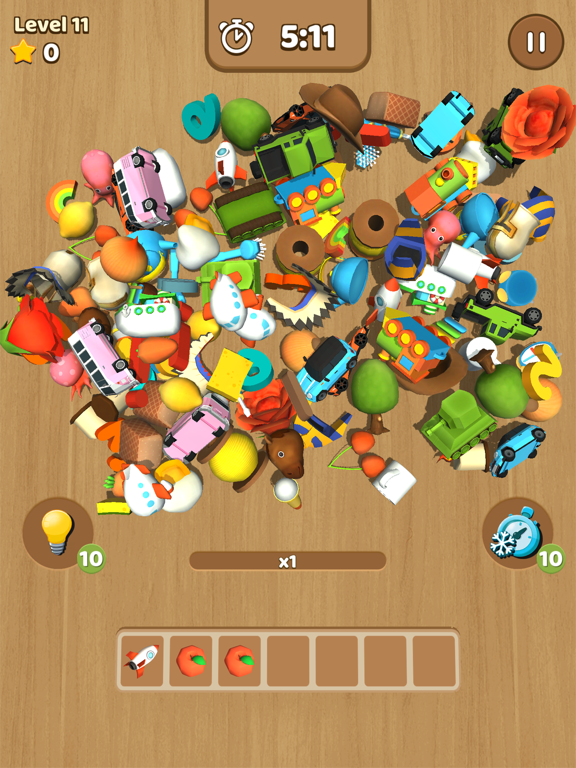 · Just tap to place the 3D objects into the box. Three same objects will be collected.