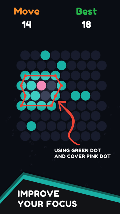This might seem easy but you must choose your green dot placement carefully.Try to create a large circle around the pink dot and steadily make it smaller – you could also consider blocking off the outmost ring of circles to stop escape and then move in on the pink dot afterwards. Try to anticipate the pink dots moves to trap it and prevent scape!