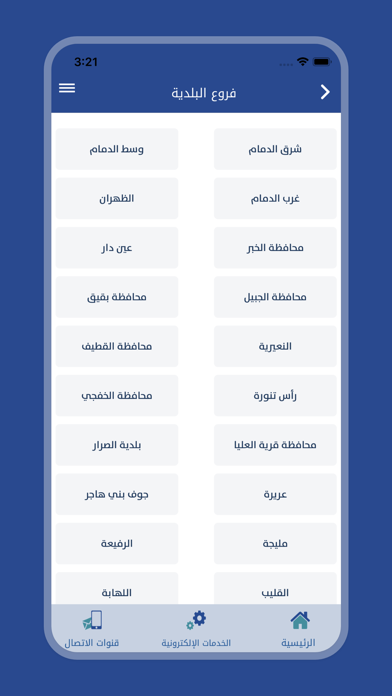 o لمن أراد الاستعلام عن موقع إحدى البلديات المرتبطة أو التابعة لأمانة المنطقة الشرقية، أو طريقة التواصل مع البلديات، وما هي الأحياء التي تتبع لكل بلدية.