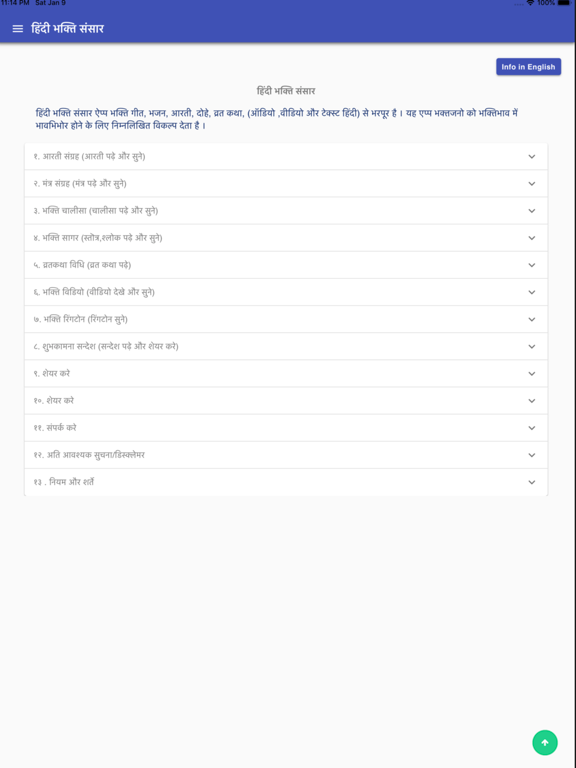 Content provided in the Hindi Bhakti Sansar app is available free on public domain. We are not claiming copyright of devotional songs, bhajan, audio, video, text, photos used in app.
