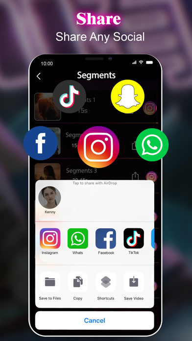 - Share into Parts with Instagram/WhatsApp/Fb/Tik/Snap....
