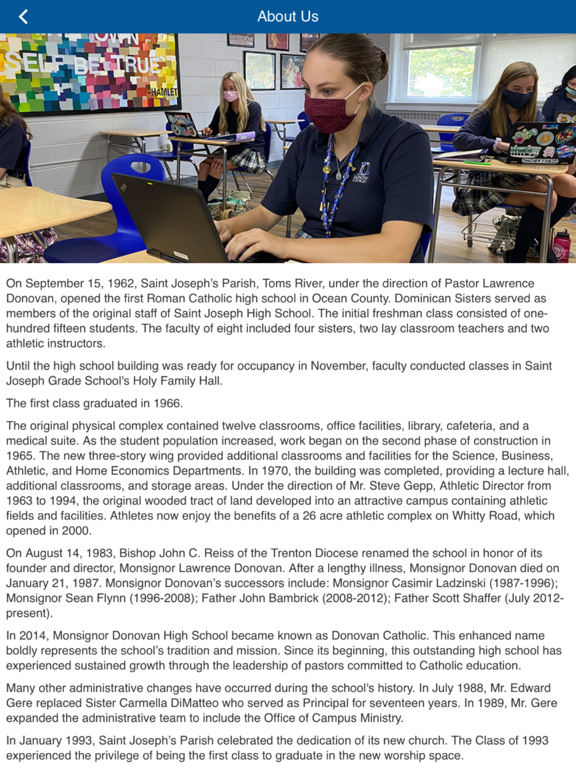 The Donovan Catholic High School in Toms River, NJ mobile app is packed with features to help you pray, learn, and connect with the school community.
