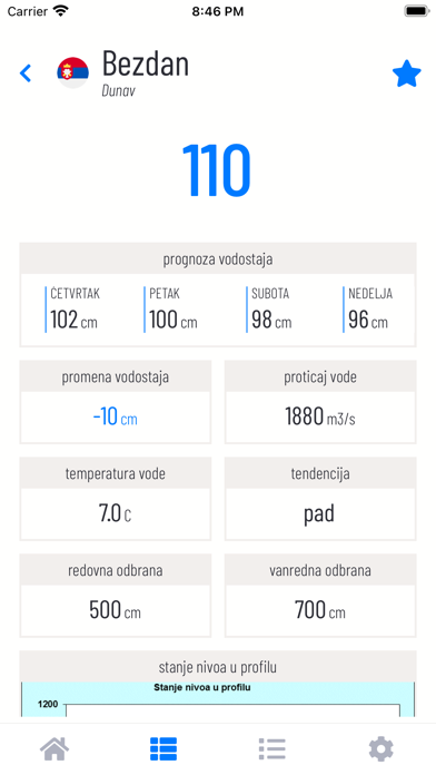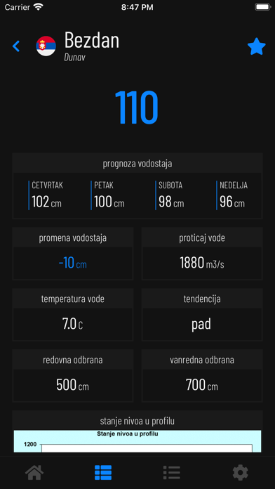 Prognoza vodostaja reka za 2 do 4 dana za 20 stanica na Dunavu, Tisi, Savi i Moravi i hidrološka situacija i tendencije za male i srednje vodotokove u Republici Srbiji. Ažurira se jednom dnevno.