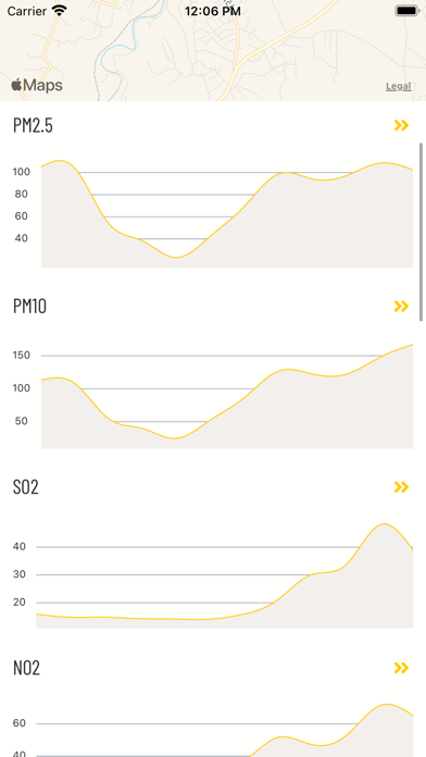 - u zavisnosti od lokacije, prikazuju se grafici izmerenih podataka za SO2, PM10, O3, NO2, NOX, CO, B, Toluene, THC (NM), NO, mp-Xylene, PM2.5, PM1, V, dd, P, t, Rh
