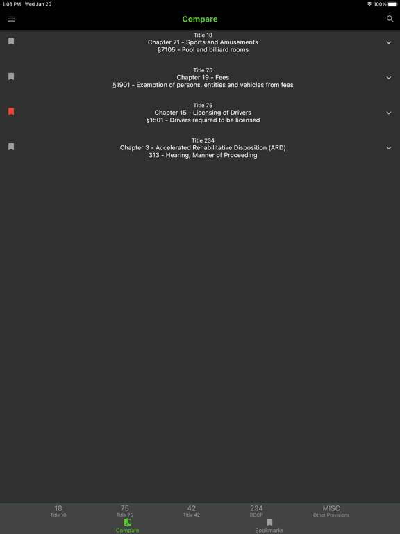 - Bookmarks: Bookmark your favorite statutes for easy reference