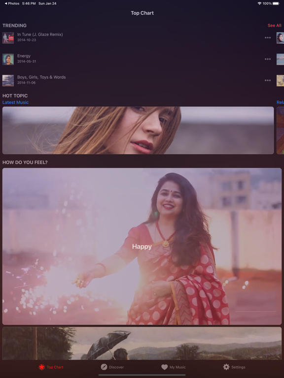 All hot music genres such as Hip-hop, Rap, Rock, Pop, R&B, Country, Latin etc.