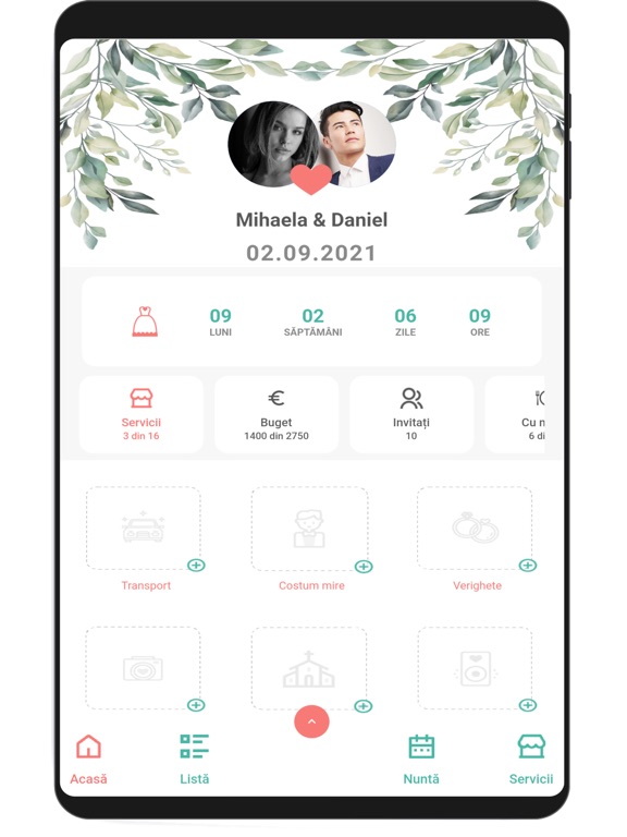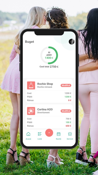 - Bugetul: ține evidența avansurilor și a cheltuielilor. Știi cât ai plătit până acum, cât mai ai de plătit, cât costă rochia de mireasă, costumul mirelui, fotograful, videograful etc.