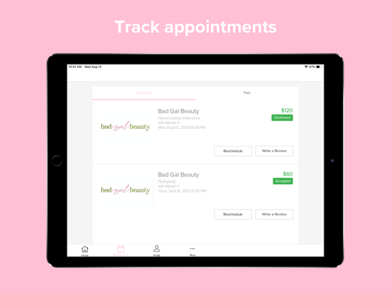Your next appointment is just a few taps away — download the Bad Gal Beauty app for free today.