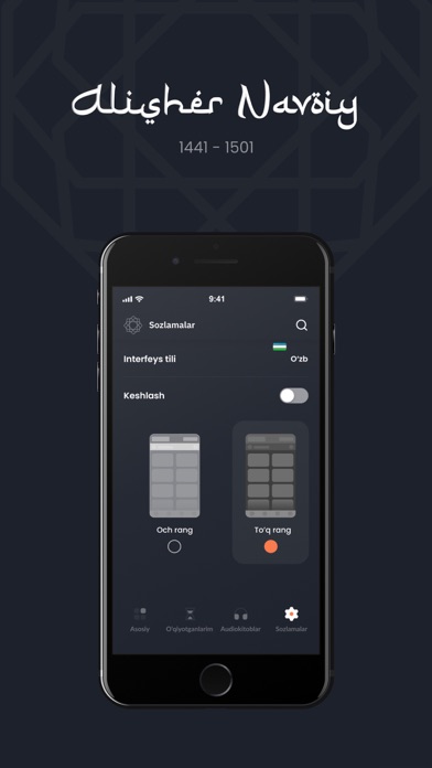 Sozlamalar bo‘limida interfeys tilini o‘zgartirish mumkin. Shuningdek, dasturni keshlash, hamda dark va light modeʼni tanlash funksiyalari mavjud.