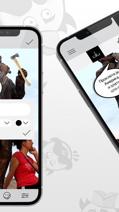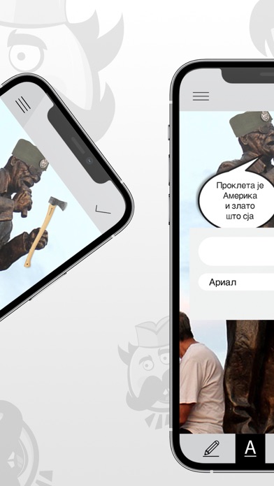 Tako da ako vi je dosadno, nemate sta da si radite, eve vam ga resenje. Probajte si ovu aplikaciju. Mnogo je zabavna. I vi ce se nasmejete i drugi ce se nasmeju. Ce bude smejanje ceo dan. Nadjite si pozadine i ovija nasi stikeri sto podsecaju na juznu Srbiju i nece zazalite. Dodajte si neki vas tekst, al da bude smesan. Kliknete 2-3 puta i gotov mim. Pa ima li bre negde lakse? Ne verujemo.