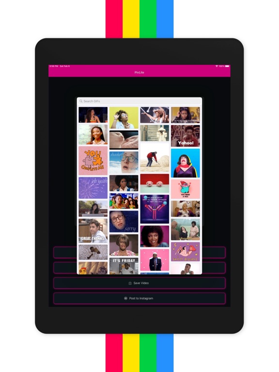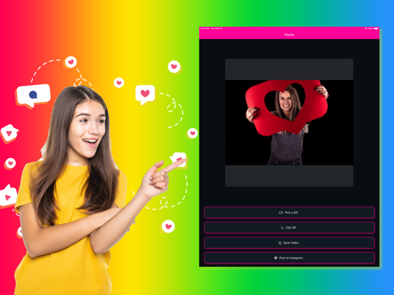 The best animated GIF editor in town! Find a source image from a huge online library of animated GIFs, and edit it without losing the animation! Crop and rotate the picture, apply more than 50 filters from 7 different categories or manually adjust colors (brightness, contrast, saturation, clarity, exposure, gamma, shadows, highlights, blacks, whites). Add any text or styled text, stickers, shapes, animated stickers, frames, or draw something yourself. Finally, save your creation as a video clip to your photo album for easy sharing, or share it directly on Instagram.