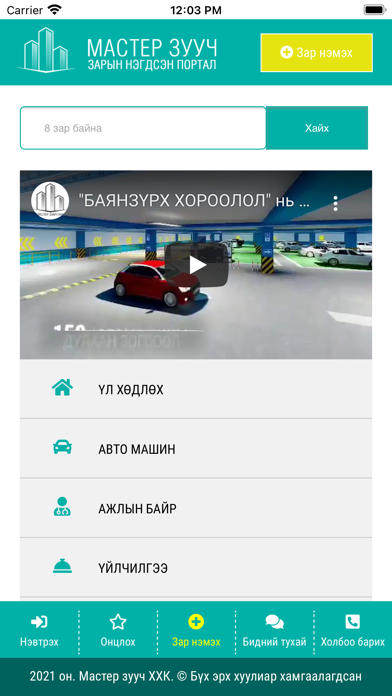 Мастер Зууч ХХК" нь 2018 оноос эхлэн Үл хөдлөх хөрөнгө зуучлалын чиглэлээр үйл ажиллагаа явуулж байгаа бөгөөд, шинэ соргог оновчтой маркетинг болон борлуулалтын санааг уялдуулан хэрэгжүүлж, боловсон хүчний баг хамт олонтойгоор захиалагч нартаа хүргэдэг билээ. Бид дараах орон сууцны төслүүдтэй хамтарсан гэрээгээр ажиллаж байна. Үүнд Баянзүрх апартмент, Баянзүрх хороолол, Stone residence, Баганат өргөө хороолол, Өсөх дэнж хотхон зэрэг орон сууцууд багтаж байна.