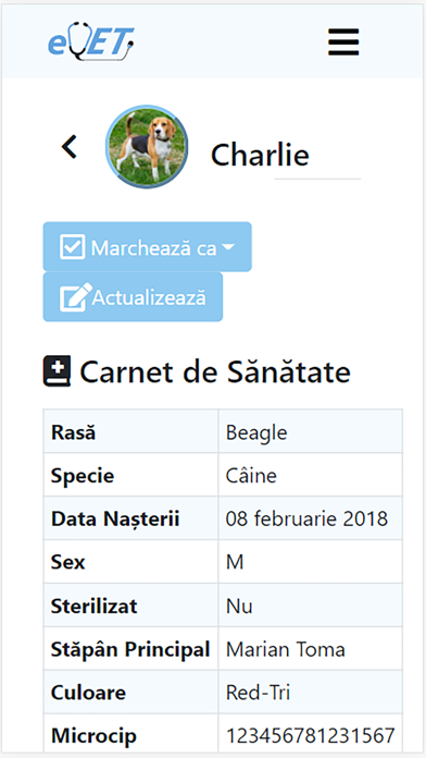 transparența față de stăpânii animalelor de companie prin punerea la dispoziție a carnetului de sănătate în format electronic, împreună cu întregul istoric al intervențiilor medicale