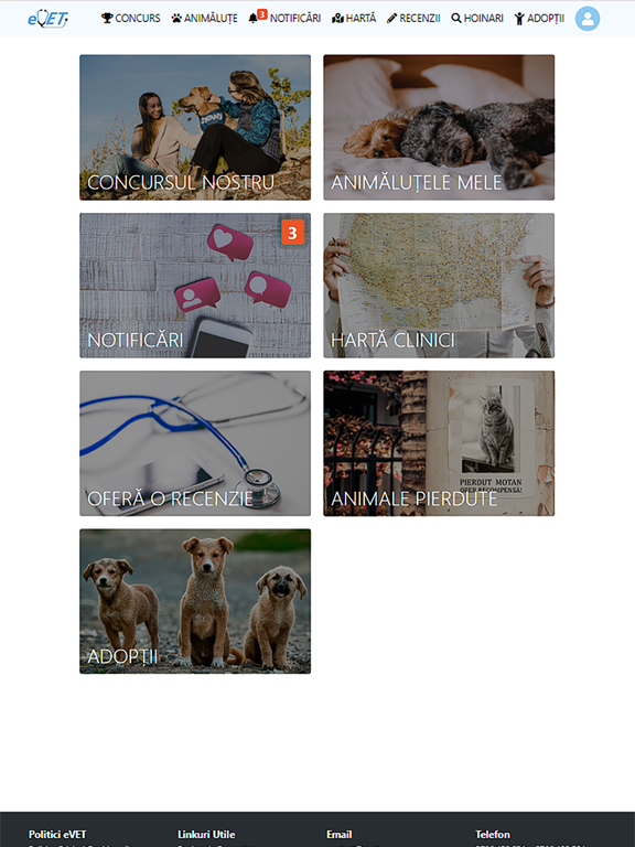 promovarea gratuită a clinicii prin intermediul hărții interactive eVET, pusă la dispoziție stăpânilor de animale pentru găsirea celei mai potrivite clinici, pe baza mai multor filtre - Oraș, Servicii, Program Zilnic sau Rating