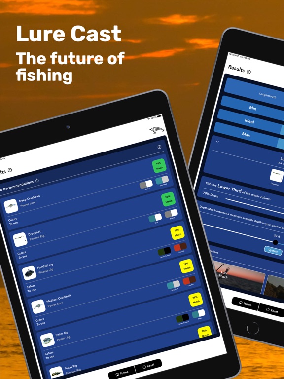 Using sophisticated algorithms and frequently updated databases of lure data, fishing patterns, and fish behavior, Lure Match takes the guesswork out of selecting your lures, colors, location, and depth. Lure Cast's recommendations are consistent and accurate and will help you have a more successful day of fishing.