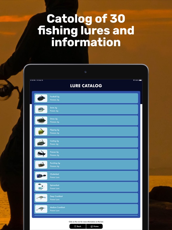 - Additional information linked to each lure including lure photo, lure description, where to fish, and how to fish