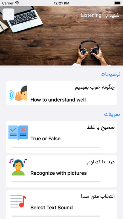 این برنامه بگونه ای طراحی شده تا کلمات و حروف ها بصورت عکس بهمراه ترجمه با صوت برای درک بهتر