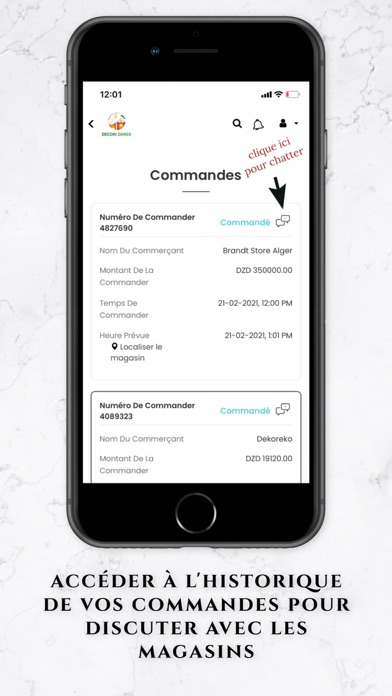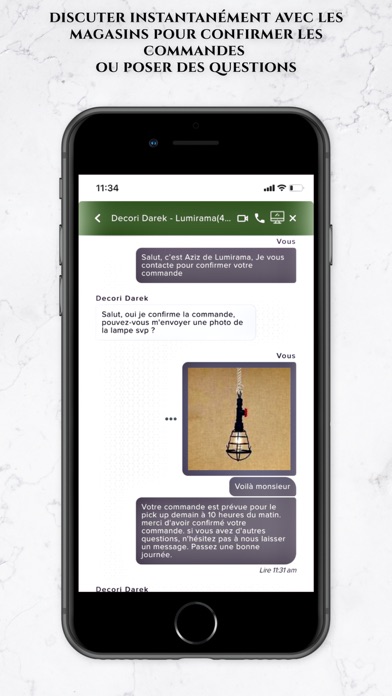 En utilisant notre application, les clients peuvent discuter avec les propriétaires de magasins pour confirmer la disponibilité de leurs commandes, échanger des photos de ses commandes, localiser l'adresse via google maps. En termes simples, Decori Darek est conçu pour rendre les achats moins stressants et pour aider les clients à économiser du temps et de l'argent.